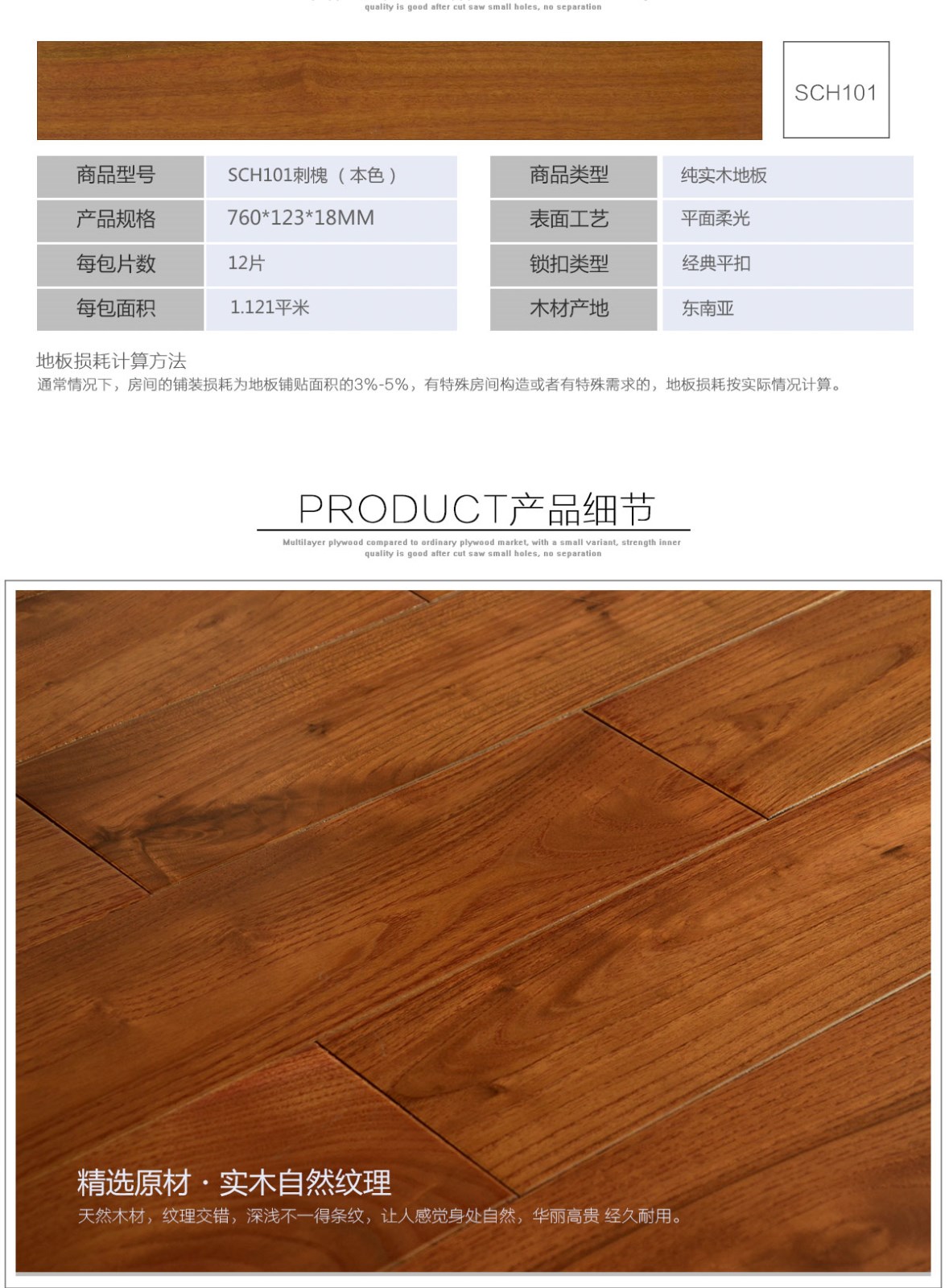 質(zhì)輕而強(qiáng)。一般木材通常都浮于水面上,除少數(shù)例外。這樣,刺槐實(shí)木地板用木材作為建材與金屬建材、石材相比便于運(yùn)輸、鋪設(shè),據(jù)實(shí)驗(yàn)結(jié)果顯示,刺槐實(shí)木地板的抗張力為鋼鐵的3倍、混凝土的25倍、大理的50倍,抗壓力為大理石的4倍。