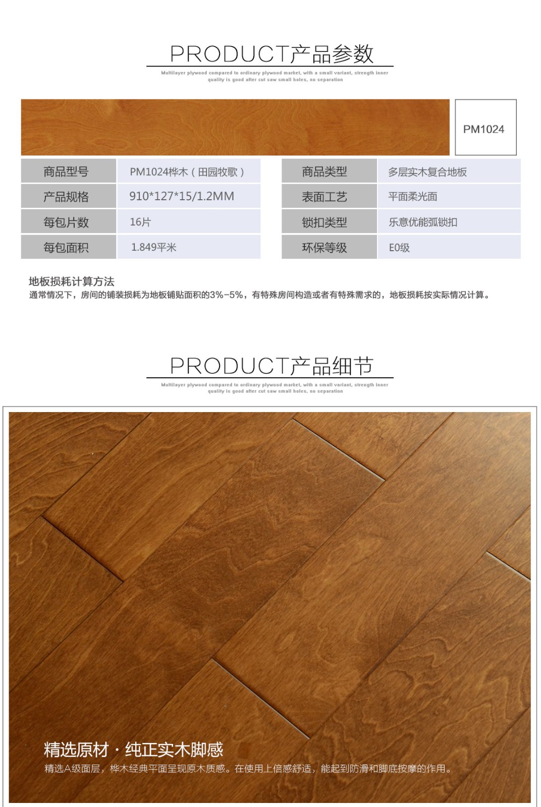 地板基材:樺木