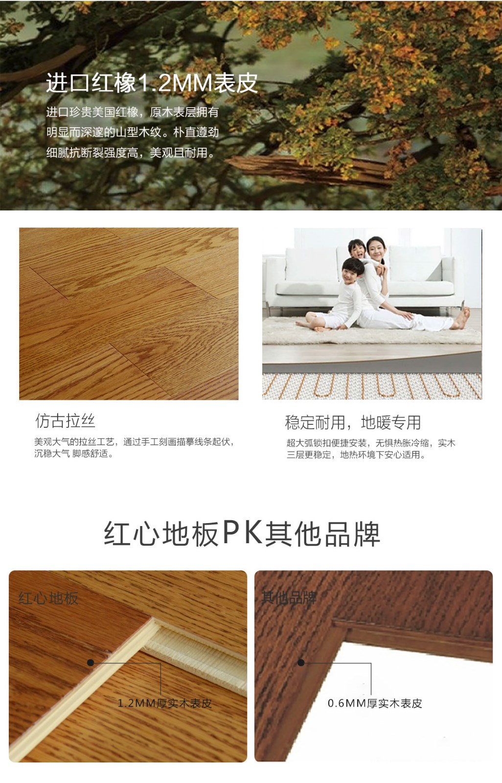 地板基材:表皮材質(zhì):紅橡