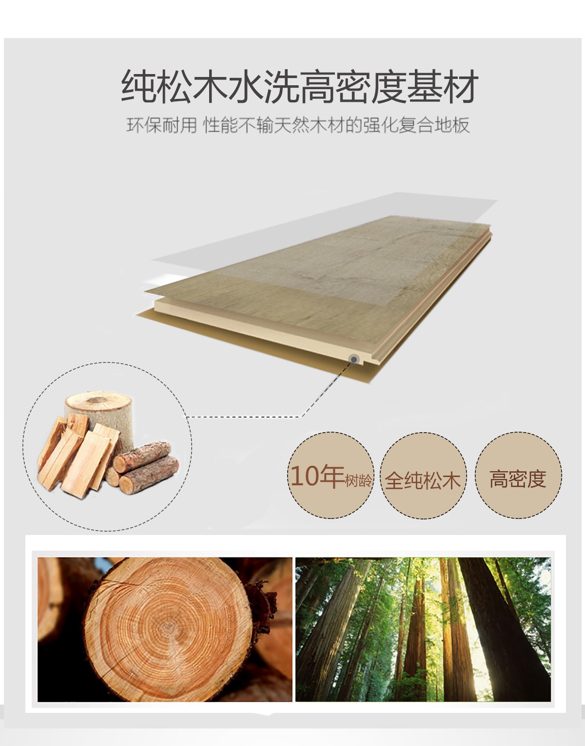 地板基材:純松木水洗白芯高密度基材