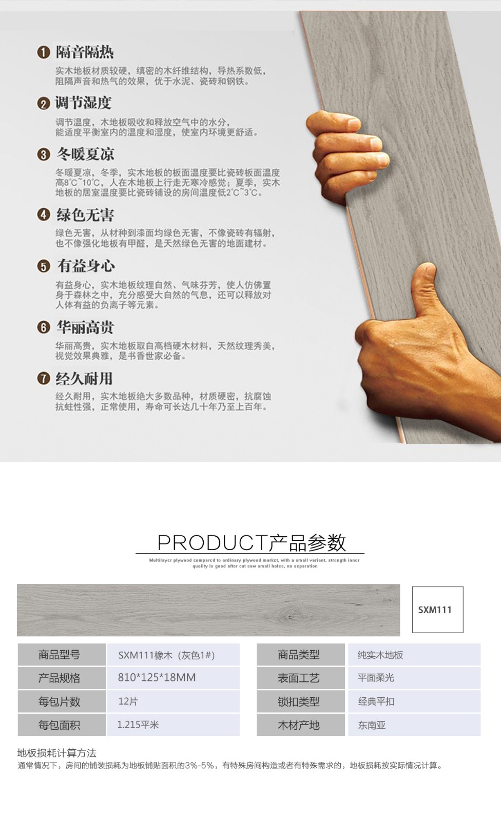 純實木SXM111橡木 (灰色1#)