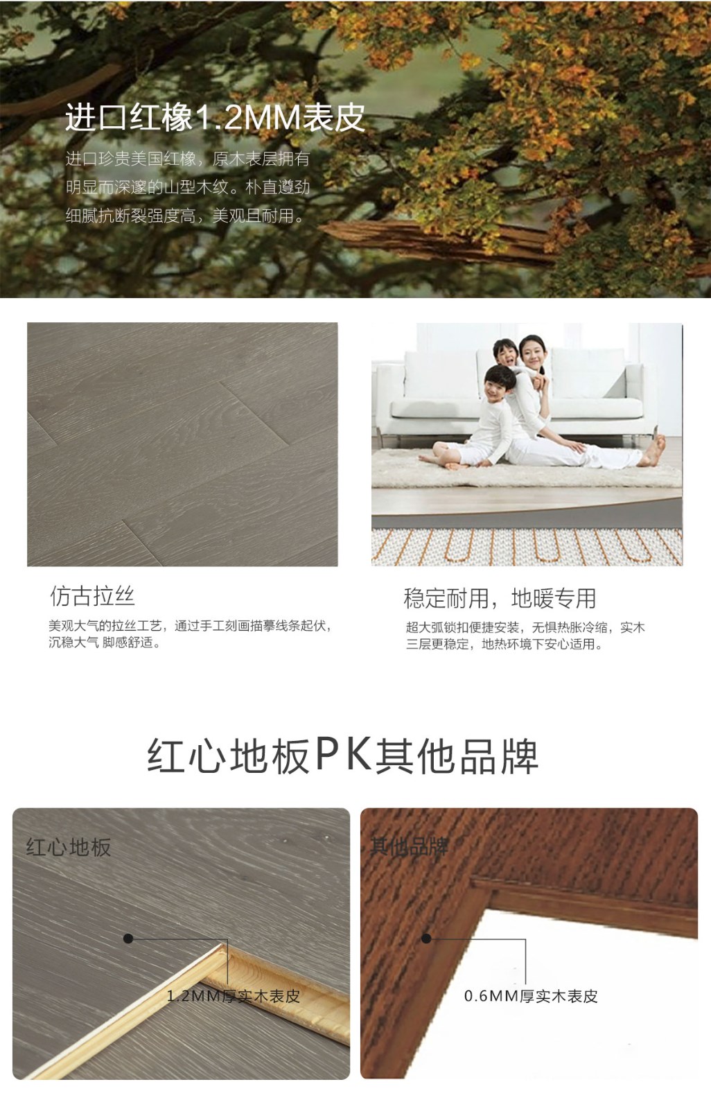 地板基材:表皮材質(zhì):紅橡